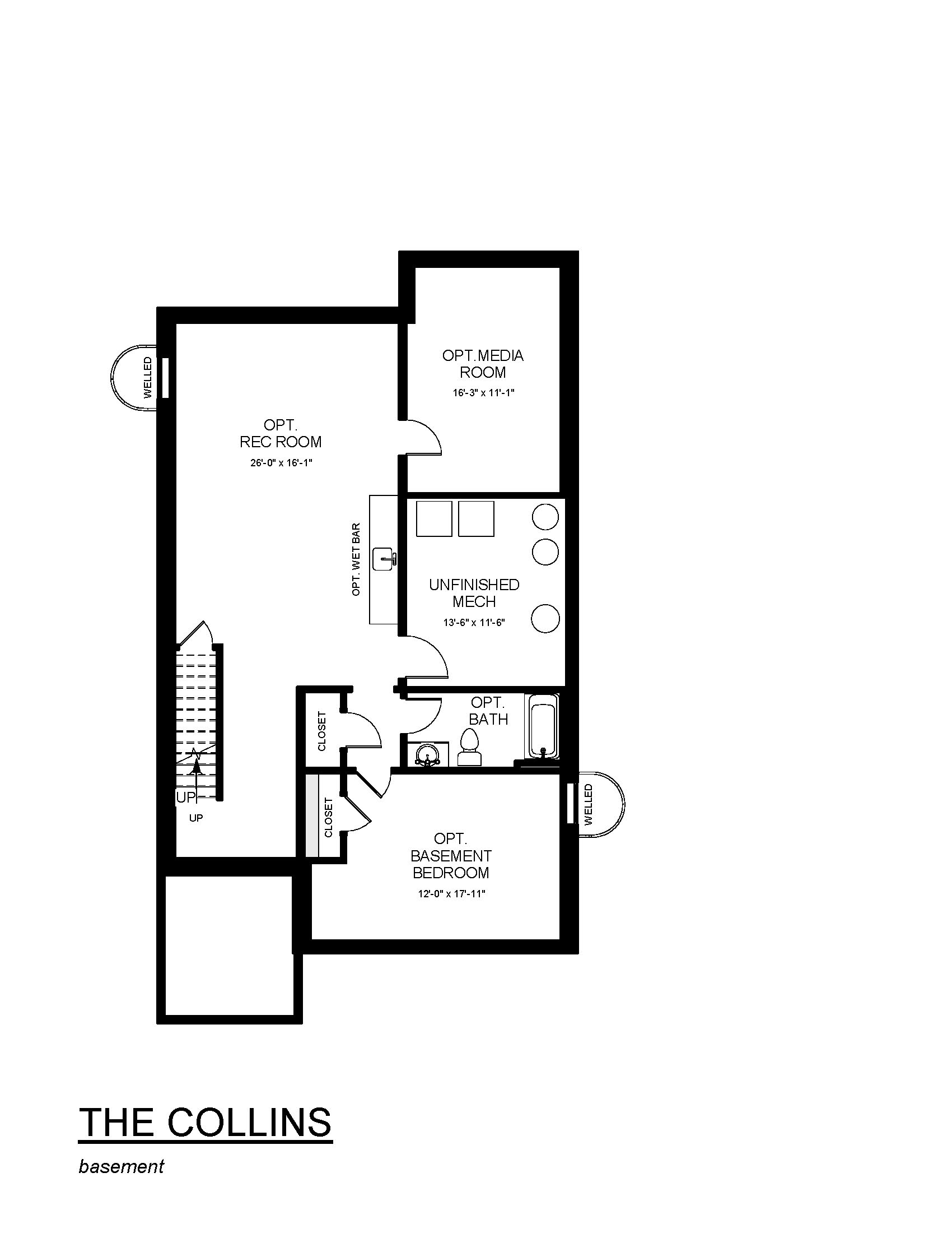 The Collins is a spacious and flexible single-family home that balances open living with private retreats. The main level features a large great room that flows seamlessly into the kitchen and dining area, creating an ideal space for gathering and entertaining. A flex room on the first floor offers versatility for a home office, study, or guest space. Upstairs, the primary suite provides a relaxing escape, complemented by two additional bedrooms, a full bath, and a conveniently located laundry room. The optional finished basement adds even more room to grow, with opportunities for a recreation room, media room, bedroom, and full bath. Thoughtfully designed and highly adaptable, The Collins offers the space and flexibility to fit your lifestyle.